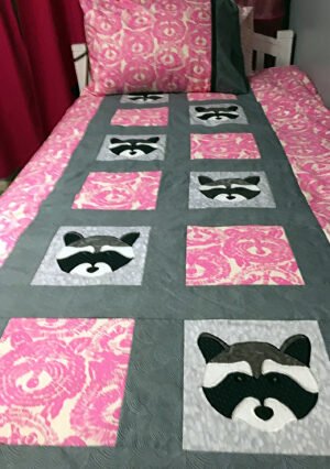 I was commissioned by Michelle to create a duvet cover for her daughter. After speaking with Michelle, she informed me her daughter loves pink and racoons (she calls them garbage pandas)! Michelle sent me this picture of the duvet cover on her bed. “Thank you so very much for making the amazing duvet cover. It is so Beautiful!” (Michelle)